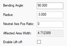 Altering the Angle and Radius will change the size of the bend region; which can be seeing visually when the offset bend lines move position, or numerically by looking at the Affected Area Width in Board Bend Line Properties. This denotes the current width of the bend region.