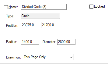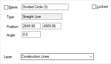 The Position, Angle and Radius of the construction lines are shown in the current design units. For a circle, the position is at the centre.
