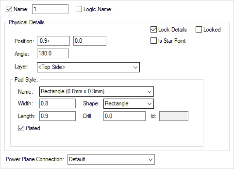 This dialog is displayed when the Properties option is chosen with a Pad selected. Pads may be pads on PCB footprints or Free Pads.