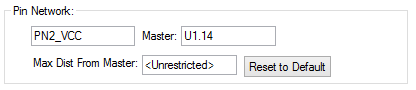 If the selected component pad is part of a pin network, then the properties page will show the name of the network, the name of the Master component pad, and any length restriction which may apply. Only the length restriction can be changed through the properties page. The length restriction shown in this dialog is what will be used during checking. Changing the value in the Pin Network definition in the technology does not change the value here.