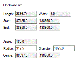 For segments that are circles or parts of circles, additional or alternative information is displayed, such as centre point and arc angle, along with radius and diameter being editable.