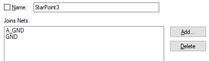 The Add and Delete buttons allow you to add nets to the star point or to remove them. This can be useful if a Via or Pad for example, have been used a star point in PCB where the star point has not been transferred from the Schematic design.