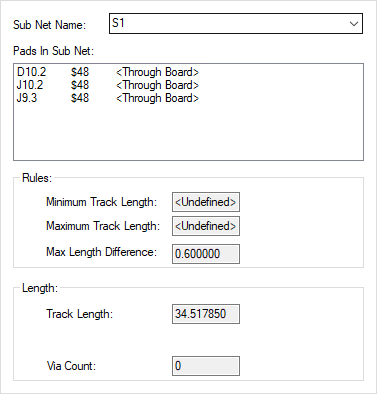 This dialog is displayed when the Properties option is chosen with a pin or track on a sub net selected.