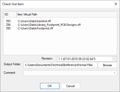 When Checking Out or Unchecking a Vault format file, you must provide a comment. This comment should be written here.