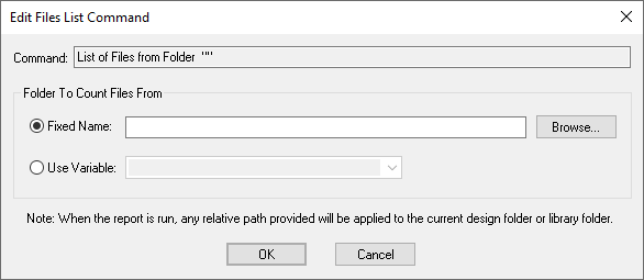 This folder name may contain a relative path, in which case it will be applied relative to the current design folder or library folder when run.
