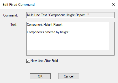 Use this dialog to define one of the fixed commands used in a Formattable Report.