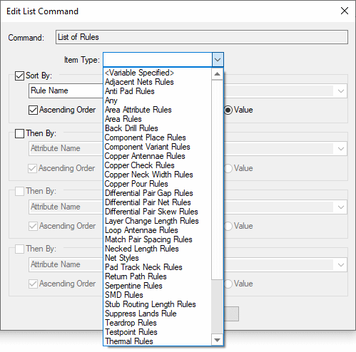 When running a List of Rules command, you can choose to report one of these rules specifically by selecting it from the Item Type box.