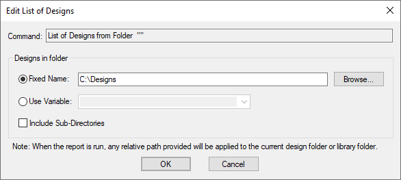 This folder name may contain a relative path, in which case it will be applied relative to the current design folder when run.