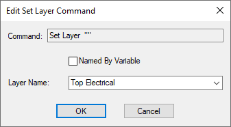 Choose the layer name that you wish to set using the drop down list of available layers in your design. If the list contains variable names, the layer name will be the whatever the variable contains when the command script is run.