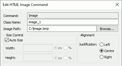 Double clicking on the command will open the Edit HTML Image Command dialog from where you can define: