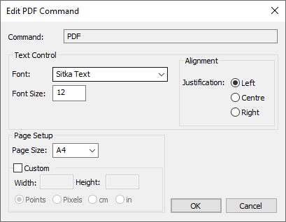 Double clicking on the command will open the Edit PDF Command dialog. From here you are able to define: