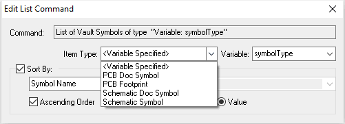 Choose a specific type of symbol from the vault, or choose “<Variable Specified>” to specify the vault symbol type at run time using a named variable.