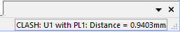 Clicking on a Clash Marker will display the names of the clashing items and the distance between them in the right-hand side of the Status Bar.