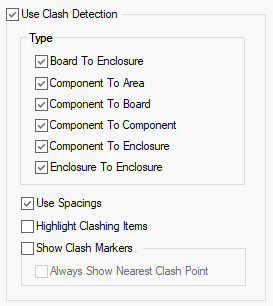 To use clash detection, you must first enable it through the 3D Settings Interaction dialog. From this dialog, you can also opt to use the Spacings that have been defined in the PCB design and brought into the 3D Preview.