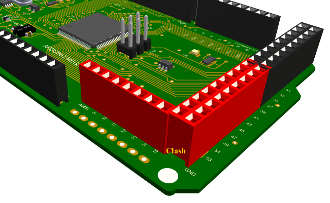 The Clash Detection option, available in the 3D Viewer. Once enabled, this option allows you to interactively move Components and Enclosures into a position where they will clash will cause the offending items to be highlighted, either by turning red or by a clash marker being shown at the appropriate location.