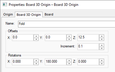 The ability to fold boards is enabled when a pair of Board Origins are inserted into the PCB design and the Board 3D Origin set with folding parameters.