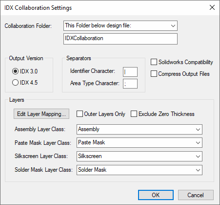 Selecting this option opens the IDX Layer Mapping dialog from where you can map IDX layers to Pulsonix layers.
