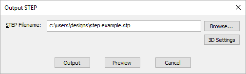 Within the 3D Viewer window, on the File menu a Write STEP File command is available. This will write a STEP file for the view which means that the data does not have to regenerate before writing making it much faster. Once the preview has been verified, you can simply commit to the STEP file by using this option. This will use the settings as defined in the 3D Settings dialog.