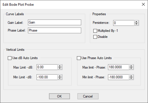 Use this dialog to change the values of the selected Bode Plot Probe components.