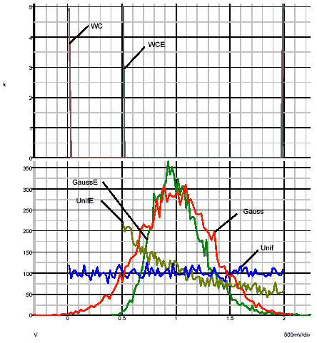 The graphs below show the characteristics of the various distributions. The curves were plotted by performing an actual Monte Carlo run with 10000 steps.
