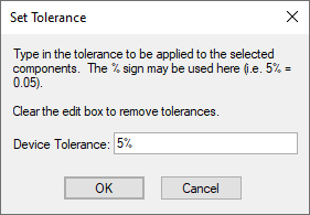 Enter the tolerance in the edit box. You may use the ’%’ symbol here if you wish, so 5% and 0.05 have the same effect.