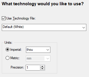 The Symbol Wizard Technology page allows you to specify your technology requirements for defining your symbol. As with the rest of the application, the Symbol Wizard utilises Technology Files as means of applying a consistent set of rules and constraints to the design process.