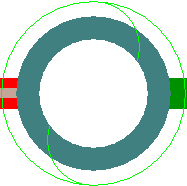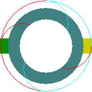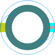 The colour of the Back Drill symbol depends on the colour of the Back Drill span, defined in Back Drill Colours. The shape itself is rotated to differentiate between a top and bottom Back Drill span. If the via has both a top and a bottom Back Drill span, then both the top and bottom Back Drill symbols will be drawn, with half of the outer circle the same colour as the top Back Drill span, and the other half being the same colour as the bottom Back Drill span.