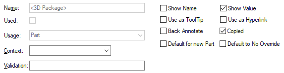 Uncheck this box if you do not want the attribute to be copied when a design item is copied. You would therefore need to explicitly add the attribute to each item. It is recommended that you leave attributes marked as copied unless you have a good reason not to.