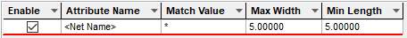The appropriate Copper Antennae rule is found for each net item by working down the list of rules until the first match is found. Hence, the order of the rules is important. A match is when the specified Attribute Name and Match Value match attributes of a net item. The Copper Antennae rule must have the given attribute, and it’s value must wildcard match the value.