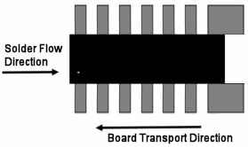 Pulsonix makes the following assumption: When creating the Footprint in the Footprint Editor, the default solder flow direction is defined as being from left to right (the board will move from right to left [Board Transport Direction] which is the direct opposite of the solder flow direction). The rotation of the footprint created will be classed as 0 degrees at this point.
