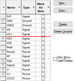 The Type will be selected from one of three types available - Signal, Power or Ground. Some reports and functions have the option to treat Power or Ground nets differently to Signal nets. This is useful because Power or Ground nets are often distributed through planes or distribution lines. You can predefine part pins and schematic symbols explicitly for use with Power or Ground nets.