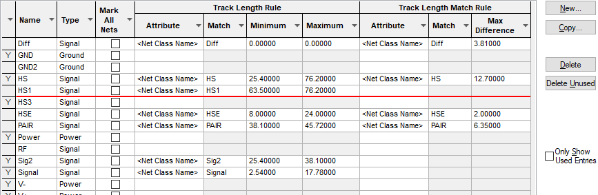 Enabling Mark All Nets As One will cause all nets using this net class to be marked at the same time. By default, this will not be enabled. In some cases a Signal Path might be more appropriate.