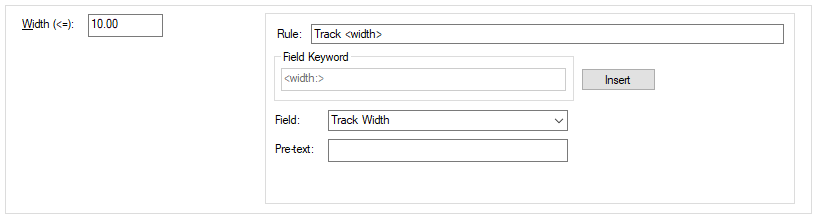 When the Match Width box is selected, this enables you to match the Width field and to define a value in the Less Than or Equal To: entry. As this rule entry specifies, the style width must be less than or equal to what you have entered as the width style. This means different rules can be created based on a Width defined for the Track style.