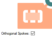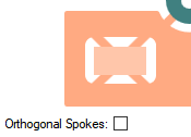 Orthogonal Spokes, when selected, this causes spokes to be orthogonal to the pad shape. This has no effect on round pads. On other shapes the spokes take the shortest distance across the gap from the same point where the angled spoke would have started. When unchecked, the spokes simply follow the line from the pad centre as shown below.