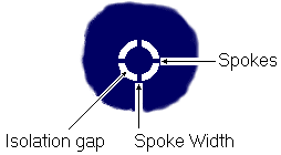These parameters are used both by Copper Pour, where the spokes are generated as copper segments, and post processing of power planes, where the gaps between the spokes are plotted. Both methods give the required results. Copper Pour will not generate a spoke if it would not connect fully, or would overshoot, the surrounding copper shape.