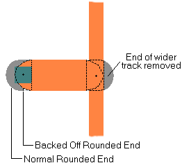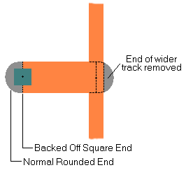 You have a choice of how these backed off track ends are finished. They are either Square Track Ends by selecting the check box, or Round Track Ends by leaving it unchecked. The track end style is only available if Back Off Track Ends is enabled. The diagrams below shows the difference in track end styles.