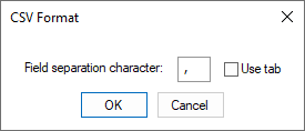 Once the filename has been written and OK pressed, a dialog is displayed that allows you to choose the CSV separator format: