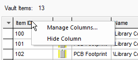 | Search… | Displays the Vault Search dialog allowing filtering and sorting of vault items |