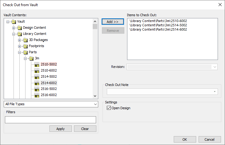 Check the Open Design checkbox to open the items for editing once they have been checked out.