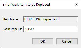 If an item, with the same name as the one you are checking in, is already present in the vault, its ID will be automatically shown in Vault Item ID otherwise you should enter the ID of the vault item to be replaced.