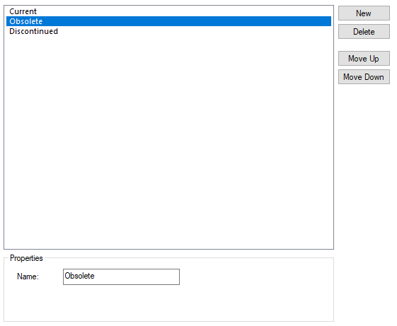 The Status page of the Vault Setup dialog allows you to define named statuses that can be set on items in the Vault.