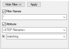Press Apply to reduce the items to be found to items that satisfy the attribute condition. The attribute filter applies to unnamed items as well as named items.