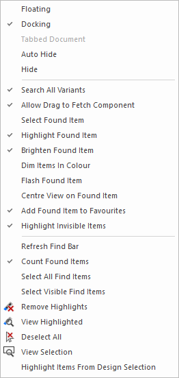 Use this to rebuild the list of design items that is currently displayed in the Find Bar. It is possible that some operations do not update the bar, so if the item you are looking for is not in the list, refresh the list. This can be placed on a key using Customise to make it easier to use.