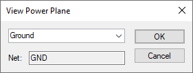 If there is only one power plane, it will automatically be selected. You can only view one power plane at a time because other power planes would be completely obscured by the one above. The chosen power plane is processed, as for post processing, and the resulting shapes drawn on the screen as a positive representation of the plane. This provides a useful visual check that the power plane is correct.