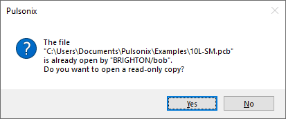 If you attempt to open a design that is already opened by someone else, their system would have created a lock file that will now be read by you. A warning will be displayed informing you of the user who has opened it. you can proceed but will only be able to open that design in read-only mode.