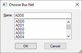 The list will show all net names on the selected bus unless they are incompatible with other busses already connected to the net. If there are no compatible nets an error message will be given saying the connection cannot be added to this bus.