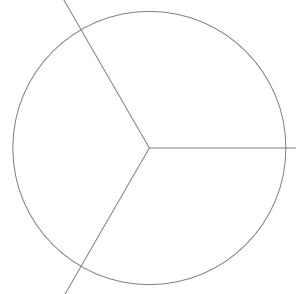 If you wish to divide a circle by an odd number; 3, 5, 7 etc,. lines are added that meet in the centre of the circle but which extend outside the design area (to infinity).
