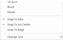 If Snap To Item is being used, check the Snap To Arc Centre option to cause the construction line point to snap to the centre of a selected arc, rather than the nearest point on it.