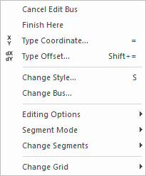 Right Click to use the shortcut menu to alter the bus appearance, alter the editing preferences, change the segment being edited, and cancel or finish the bus. These options are described in more detail below.