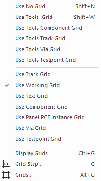 To switch to gridless placement use the Shortcut Key Shift+N. To switch to placement using the Working Grid use the Shortcut Key **Shift+W,**or during component move right click the mouse and select Change Grid. From here you can switch to Gridless, Working grid or Component grid.